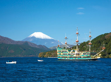 Visita al valle volcánico de Owakudani, teleférico de Hakone y crucero por el Lago Ashi. Se puede observar el Mt. Fuji si la climatología lo permite.